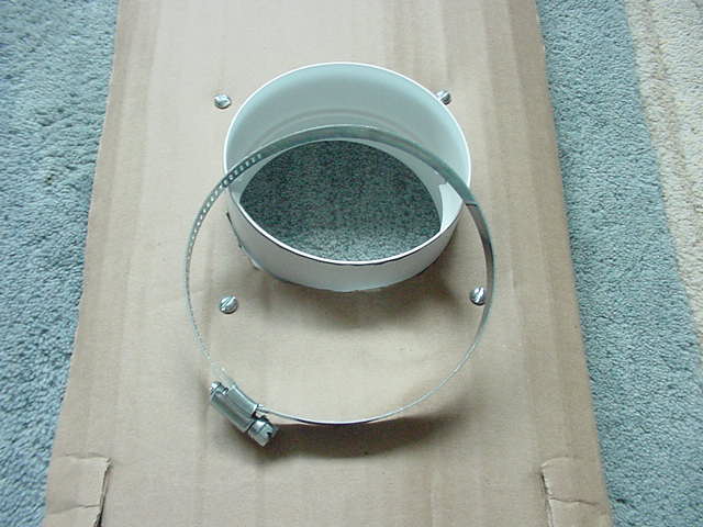 - Slide the 6″ to 4″ duct reducer over the starter collar. Attach one end of the metal duct to the duct reducer and tighten with a duct clamp.