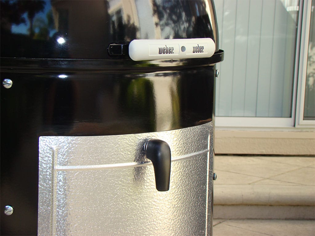 It was a great product that served us well, but for many years Weber fans had been hoping for some product improvements and innovations. A bigger cooker with greater cooking capacity, a built-in thermometer, a bigger, more stable water pan, a better access door, and a charcoal grate that doesn’t drop charcoal into the bottom of the bowl.