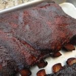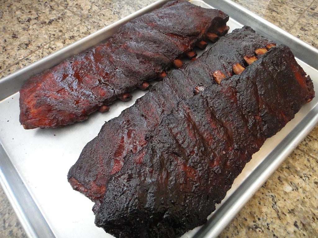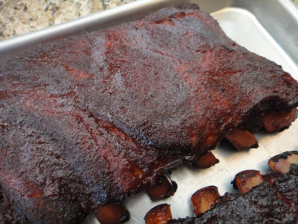I wrote in my cooking log that these ribs had a deep, mahogany color with good smoky flavor and good moisture. The meat was tender to the point of almost falling off the bone. I’ll definitely try these again in the future!